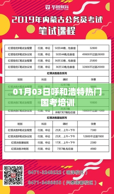 随着国家对公务员队伍建设的日益重视,国考竞争日趋激烈,为了在众多考生中脱颖而出,选择一家优质的国考培训机构成为了许多考生的共同选择,本文将为您介绍01月03日呼和浩特热门国考培训的相关信息,帮助您在备考路上少走弯路。